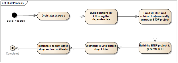 On a side note, I chose to use CruiseControl instead of TFS build due to the mess to handle the post build events. The workflow is described below,