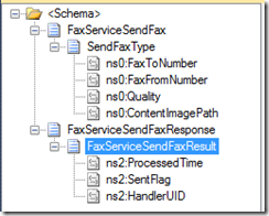 § A simple rule, the inbound message <displayname><parameter name>{data}</parameter name></displayname; the outbound response <SendFaxResponse><SendFaxResult>{Name}</SendFaxResult></SendFaxResponse>