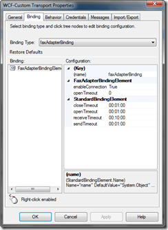 § xxxURL.cs: This is where the custom connection string will go, i.e. for my scenario, the binding string is fax://faxserver/?enableTracing, the schema is fax, the fax server is host, enable tracing is custom query parameter which is then passed to a property field